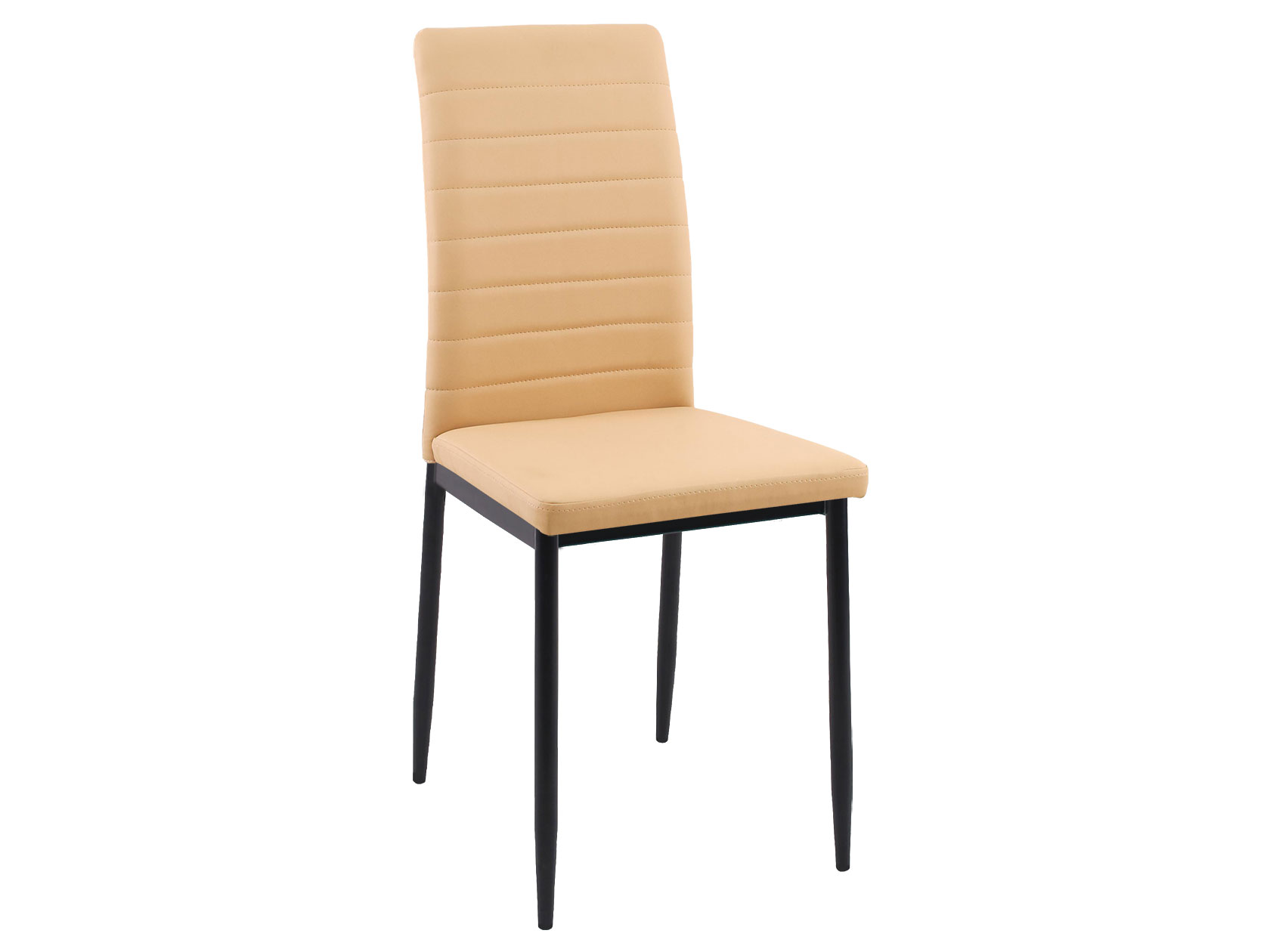 Мягкое сиденье и слегка изогнутая спинка с декоративной строчкой обеспечивают комфортную посадку. Модель без подлокотников идеальна для небольшого пространства: ее можно вплотную придвинуть к столу. Металлический каркас гарантирует прочность и устойчивость конструкции.