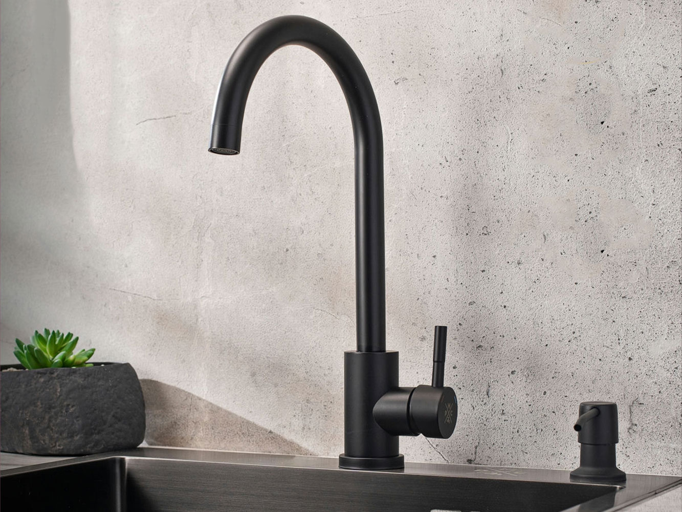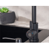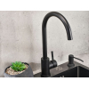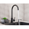 Оптимальная высота излива позволяет мыть посуду, наполнять емкости и выполнять уборку. Рычаг управления настраивает подходящие температуру и напор воды. Ударопрочный материал сохраняет аксессуар от износа и ржавчины.