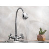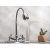 Удобная высота излива подходит для мытья посуды, овощей и фруктов, а также уборки на кухне и наполнения емкостей. Гальваническое покрытие придает особую устойчивость к повреждениям.