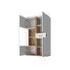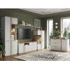 Комбинированное наполнение поможет найти место для посуды, книг и важных мелочей. Деликатная фрезеровка на фасадах сочетается с прозрачным стеклом и деревянными текстурами, создавая привлекательный вид мебели.