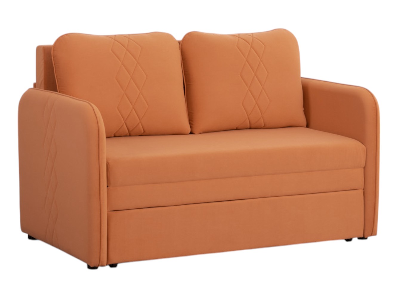 Диван легко раскладывается для сна, при этом планка в изголовье и обитые тканью подлокотники создают комфорт и ощущение защищенности. Износостойкая ткань приятна на ощупь и нетребовательна в уходе.