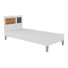 Приподнятое над полом основание создает эффект визуально легкой и невесомой мебели. Деревянные ножки смотрятся привлекательно и обеспечивают прочность конструкции, а декор на спинке дарит индивидуальность.